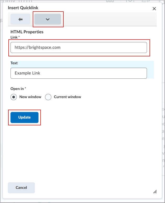 ملاحظة: إذا حدد المتعلّم ارتباطًا سريعًا إلى نشاط خارج نطاق تواريخ توفره، فإن Brightspace يعرض "ارتباط سريع غير متوفر. <activity type> غير متوفر". وفي هذه الحالة، لا يكون الارتباط السريع غير كامل. ولمنح إذن الوصول، قم بتغيير تواريخ توفر النشاط. |