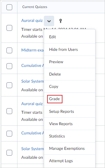 إذا كان اختبارك يحتوي على أسئلة يمكن وضع علامة عليها تلقائيًا في Brightspace، فليس عليك تقييم هذه الأسئلة إلا إذا رغبت في ذلك.