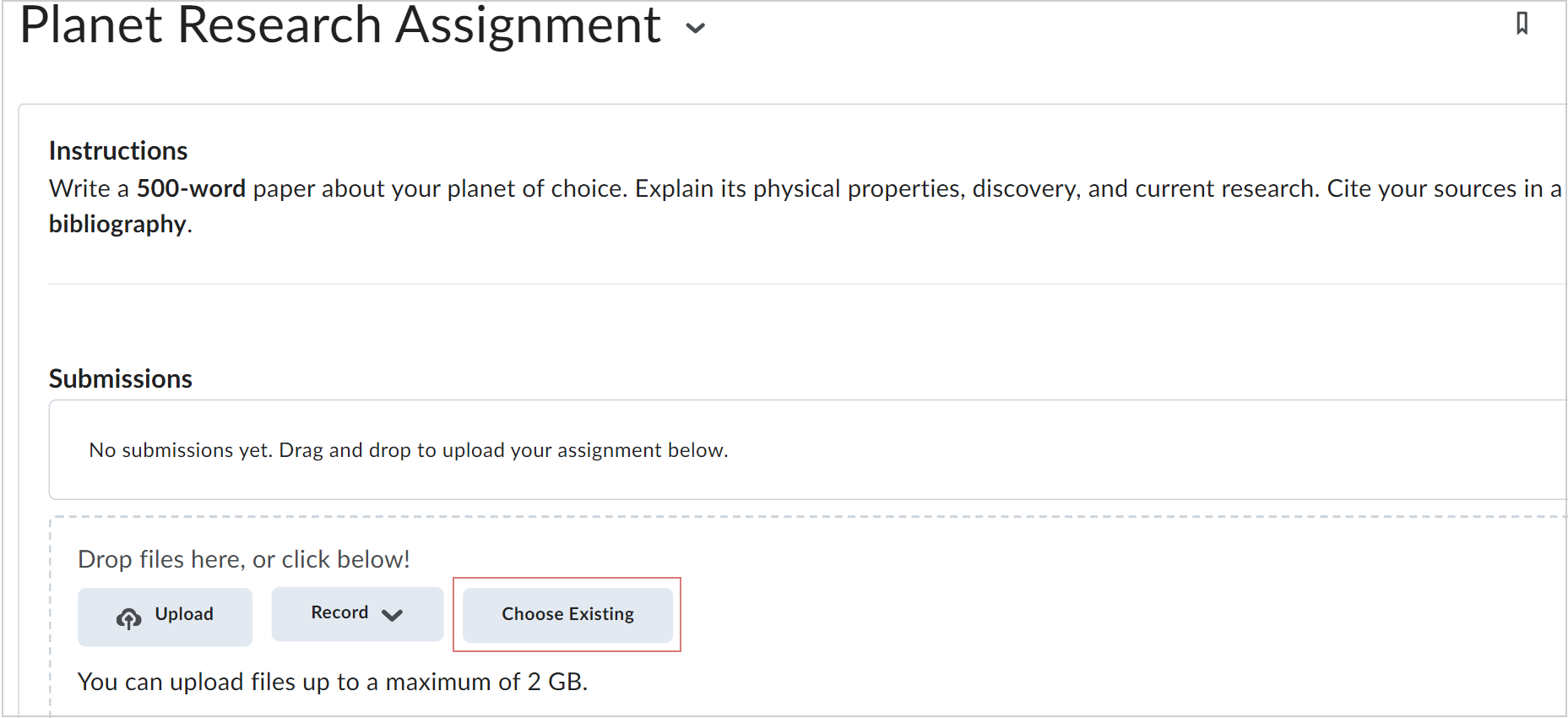 ملاحظة: للوصول إلى الملفات وتحديدها من Google Drive في مقررك التعليمي، يجب تمكين تكامل Google Workspace وتوفير الأذونات المناسبة. |