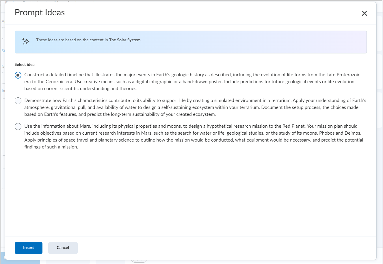 إنشاء أفكار الواجبات باستخدام D2L Lumi Idea
