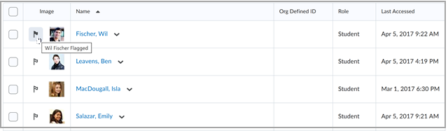 - En la columna Imagen, haga clic en el ícono de bandera que aparece junto a la imagen del usuario que desee marcar.