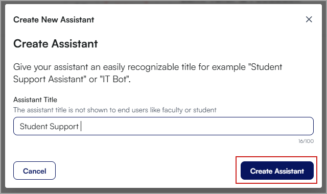 - Ingrese un nombre para el Asistente y haga clic en Crear asistente.