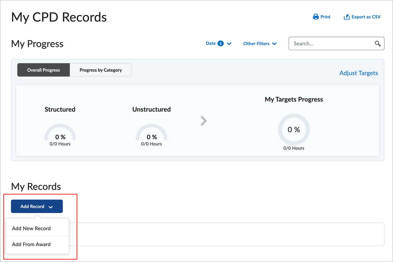 Lorsque vous obtenez un badge ou un certificat dans un cours Brightspace, vous pouvez le consigner dans Mes dossiers de PPC.