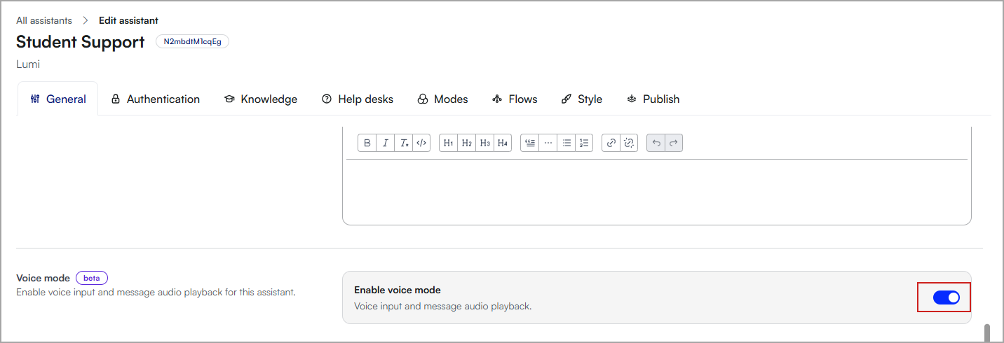 - Prévisualisez l'assistant propulsé par l'IA et testez les réponses de Clavardage Lumi avant de déployer les changements pour tous les utilisateurs.