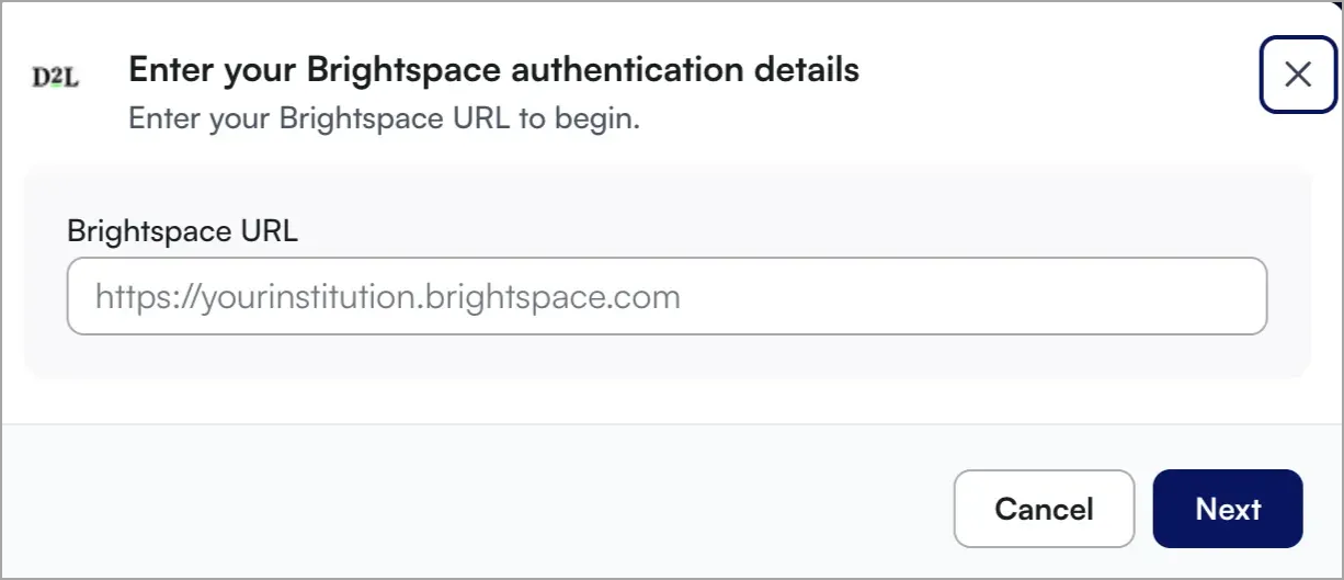 - Insira o URL do Brightspace e clique em Avançar.
