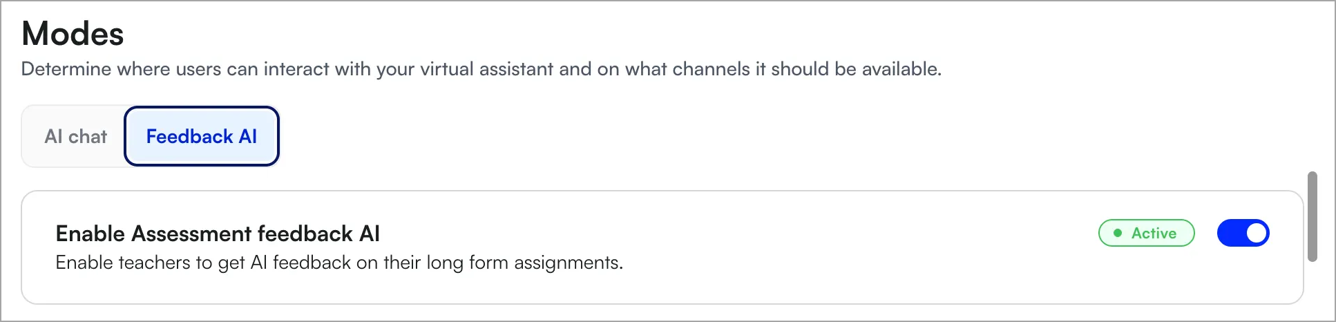 - Na guia Modos , selecione IA de Feedback.