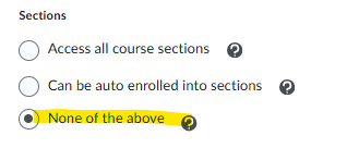 Under the Role Settings> Course Access Options> Sections, the option "None of the above" has this effect: