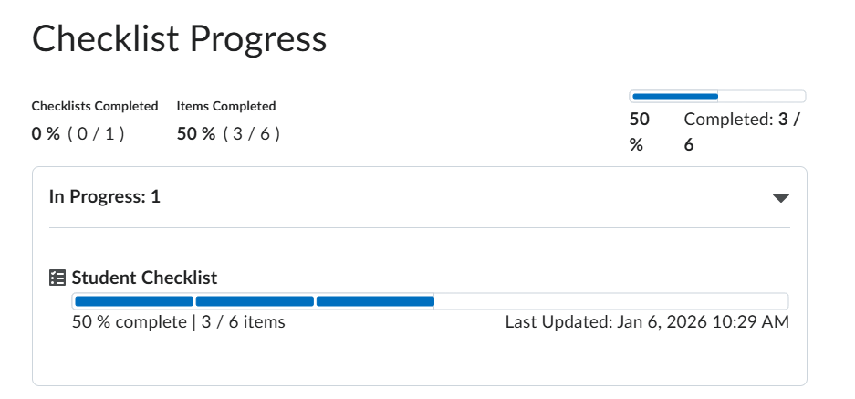 We believe we can adapt the checklist to suit the purpose but would like to know if Instructor users can have a more granular view if student progress with a checklist. From what we know, Instructors view student progress in a checklist from the Class Progress in Course Admin.