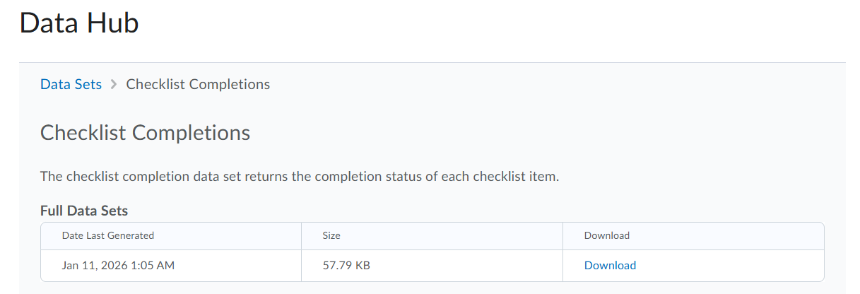 A Brightspace administrator could try running a Data Hub report… perhaps the data set called "Checklist Completions"…