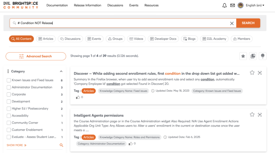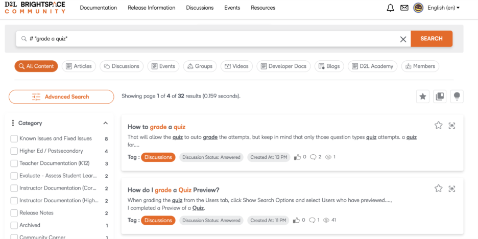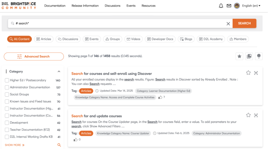 We are excited to share that we are launching a new and improved search tool in Brightspace Community to help you more easily connect with the resources you’re looking for.