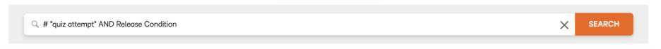 Returns documents that contain the phrase "quiz attempt” or the keyword "Release Conditions" or both. You can also use parenthesis. (Quiz Attempt) OR Release Conditions finds all the documents that have either the phrase content source or the keyword dynamics or both.