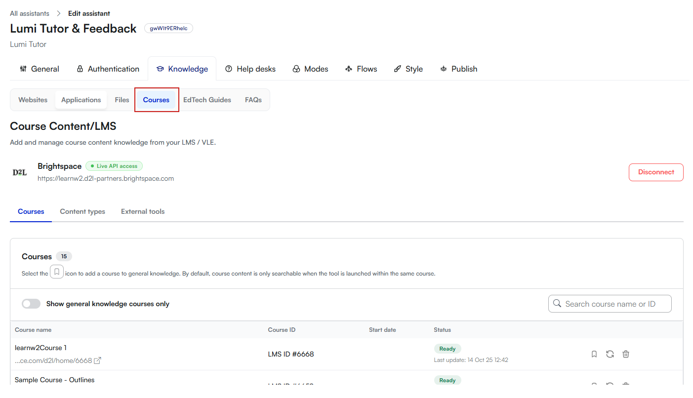 - You have Admin access to both D2L Lumi Chat admin portal and Brightspace.