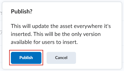 - Click Publish again on the confirmation message to replace the SCORM everywhere it appears.