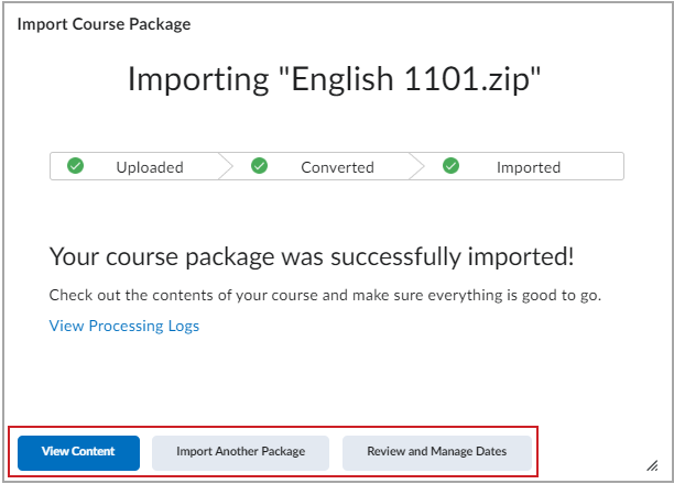 - Import Components from Learning Object Repository or Course Package