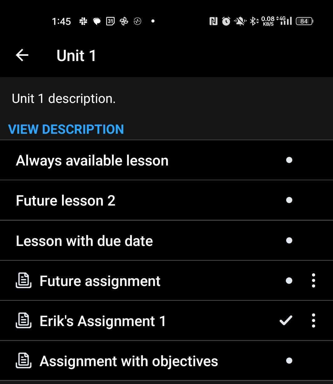 Figure: Content items will display due dates, start dates, and end dates where applicable.